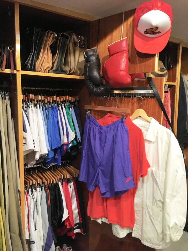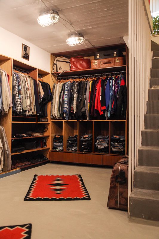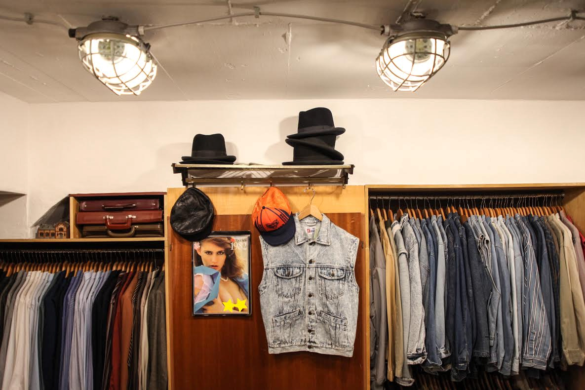 Im Keller ist die Männerabteilung, die oft auch von Damen geplündert wird. Das Sortiment umfasst Lederjacken, klassische Herrenbekleidung (Hemden, Sakkos, Trenchcoats, Pullover etc.), Jeanswear, Sportswear von den 70-90ern und ausgefallene Einzelstücke. Eine große Auswahl an Vintage Jeanshosen (Levis 501, Wrangler, Lee etc.) haben wir in verschiedenen Farben in den Größen 31-38 immer vorrätig. Schuhe und Accessoires runden das Sortiment ab.