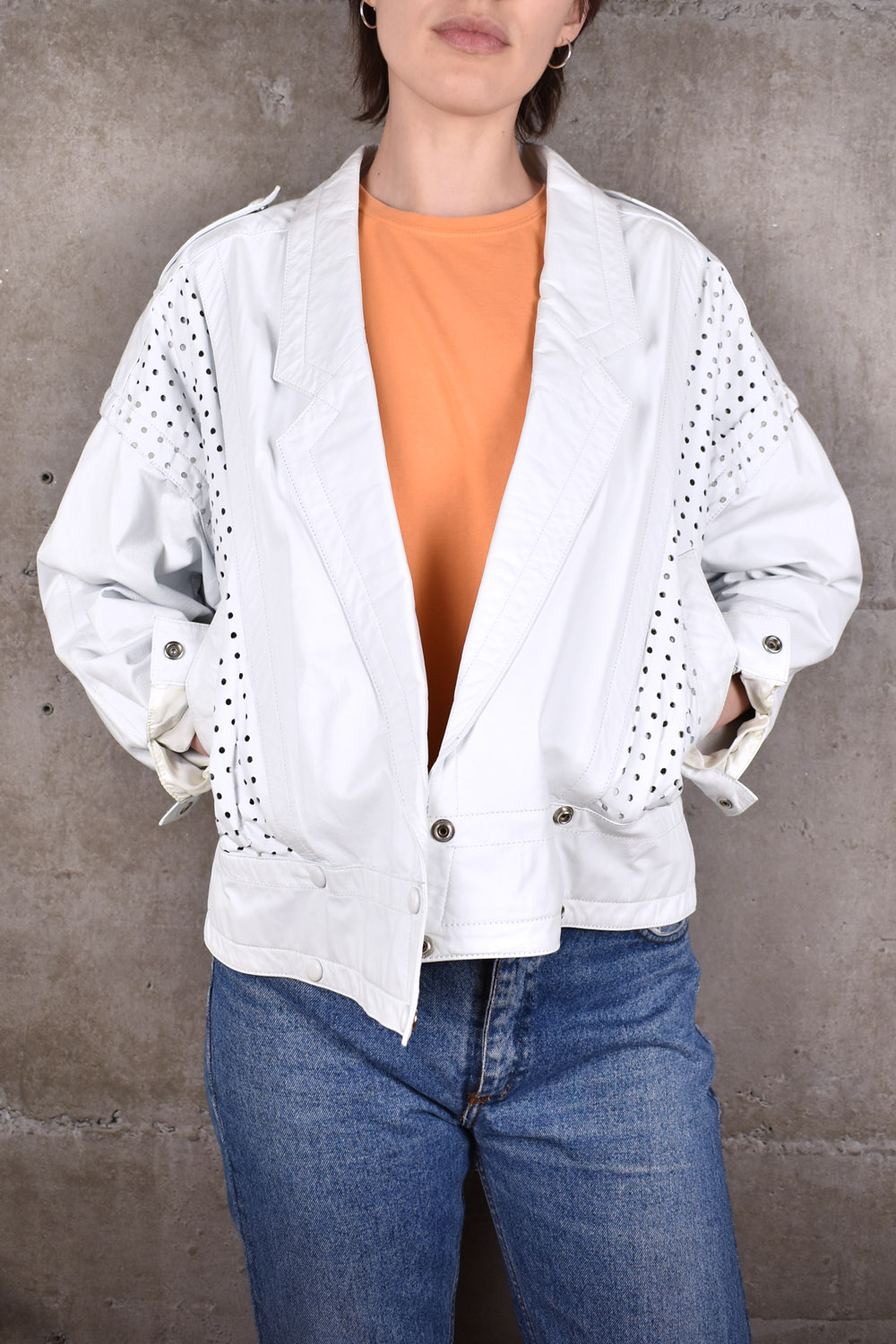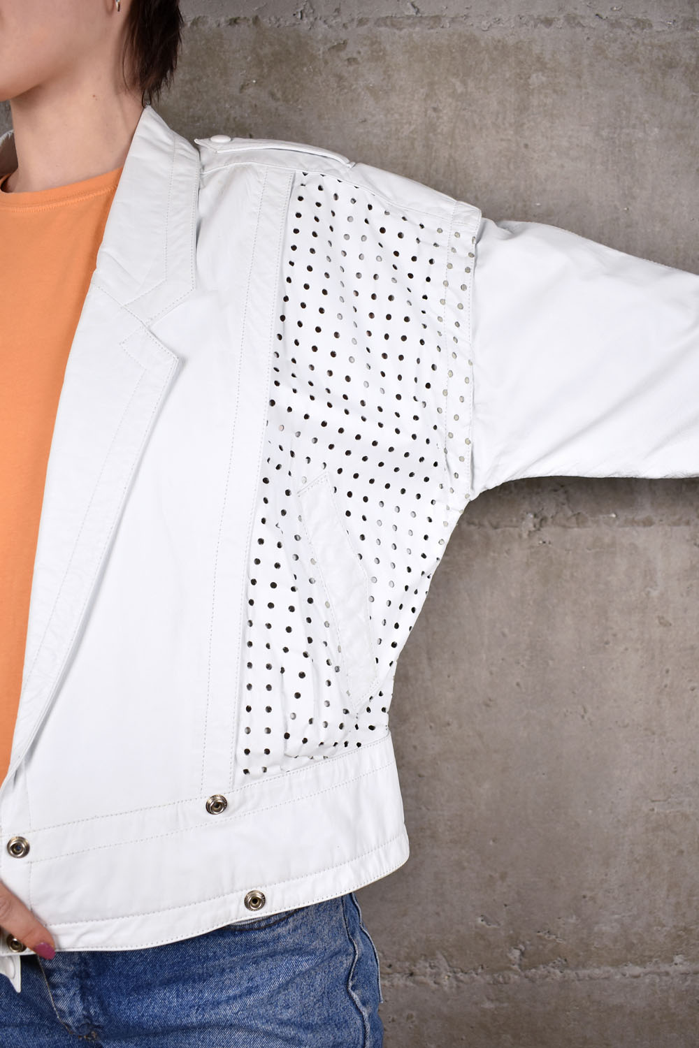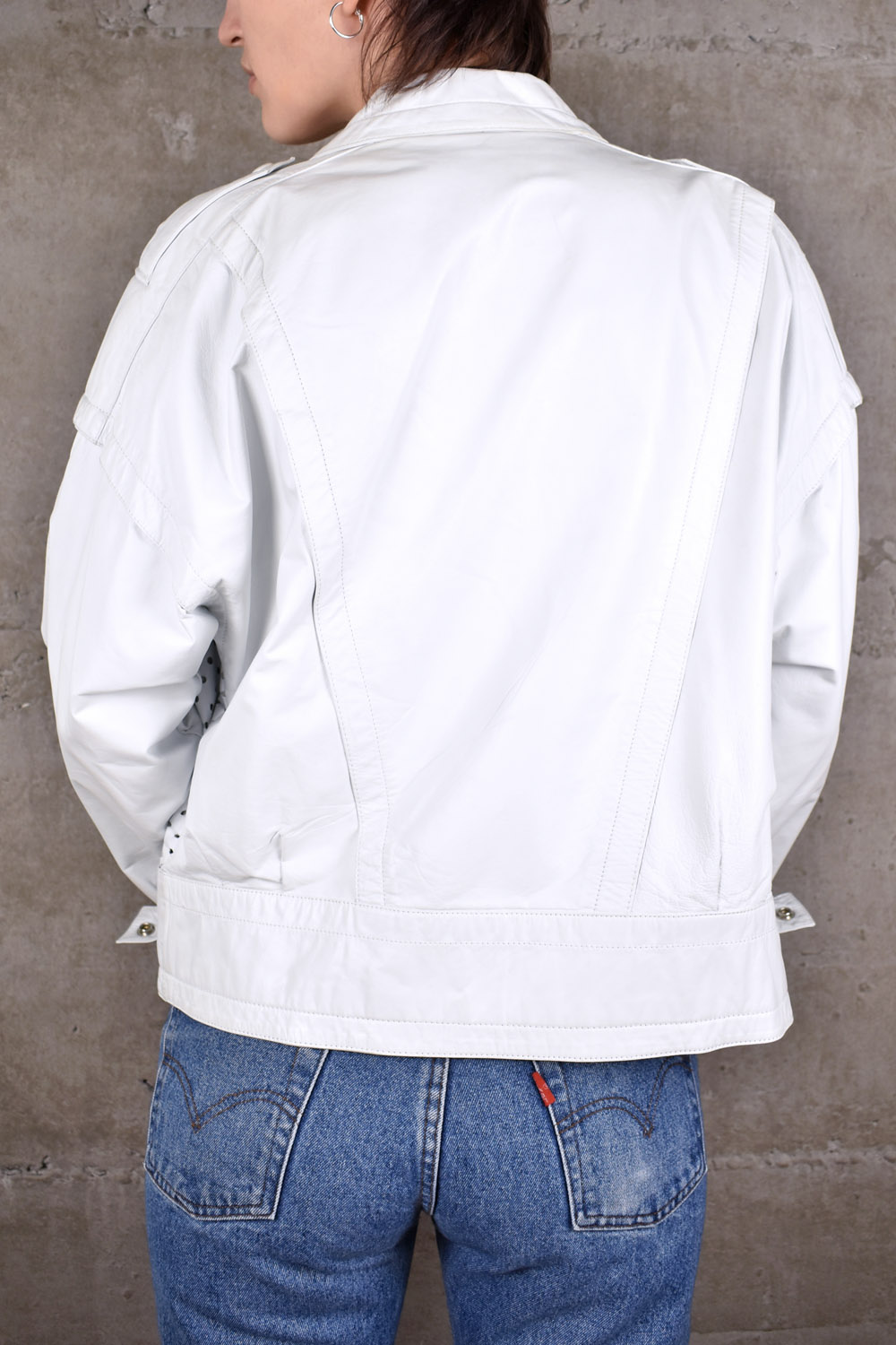 80er Jahre Lederjacke weiß, made in Germany. Größe 40 / M-L.