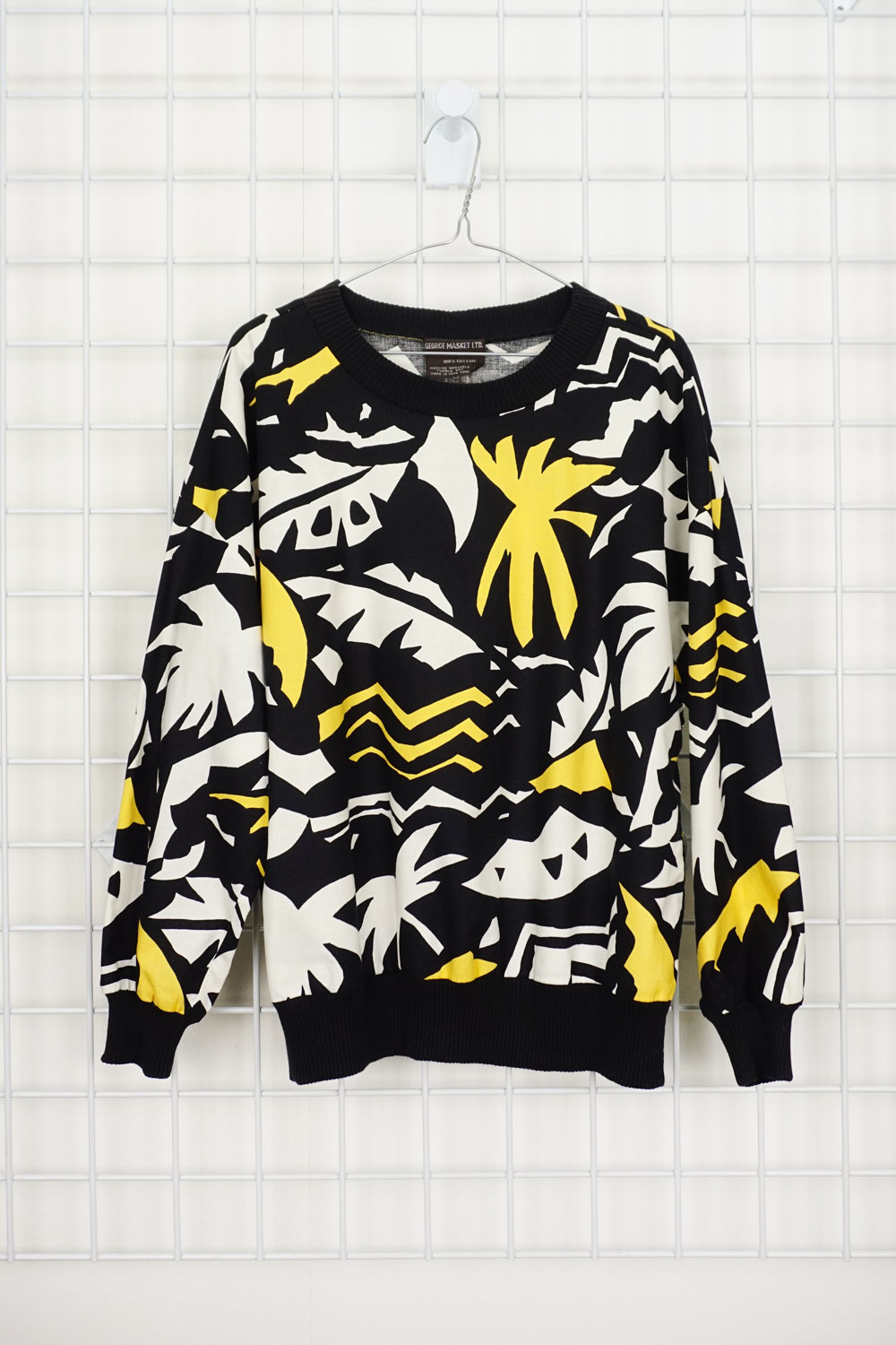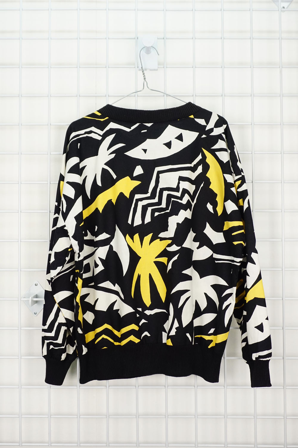 Langarmshirt / dünner Pullover aus 100% Baumwolle mit auffälligem Printmuster und abgesetzten elastischen Bündchen an Ärmeln und Saum. Entspricht Größe M-L.