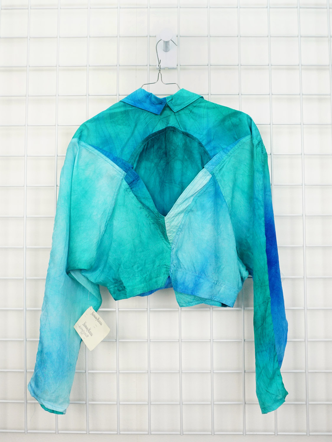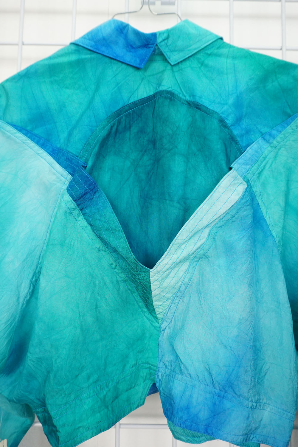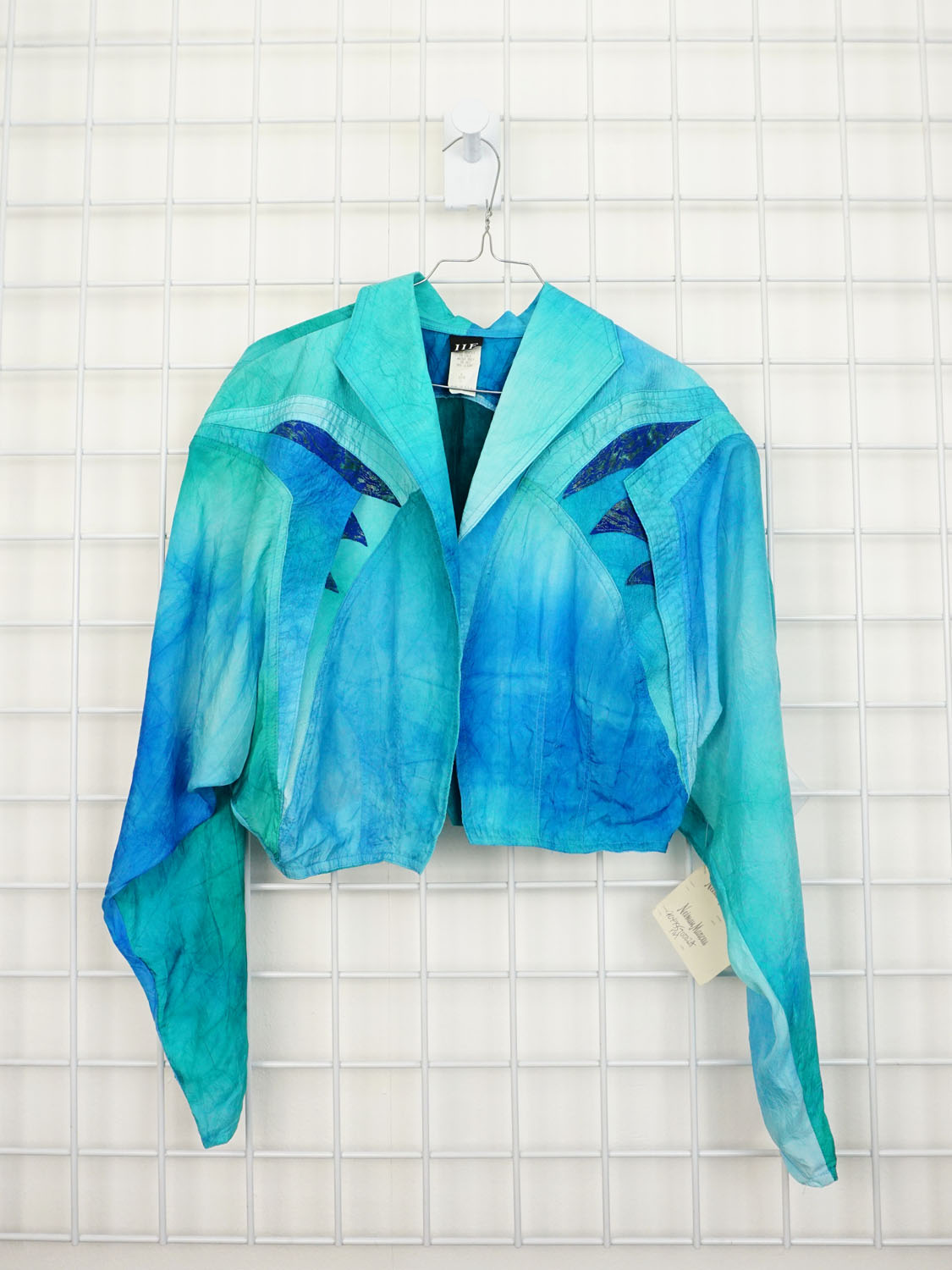 Kurze 80er Jahre Sommerjacke aus 100% Rayon, in tollen Türkis- und Blautönen, made in U.S.A.
