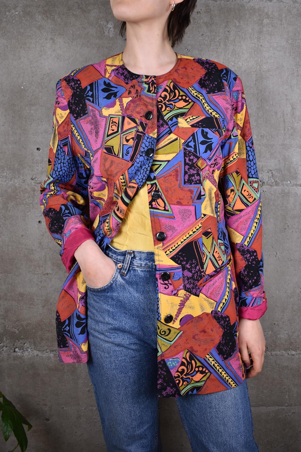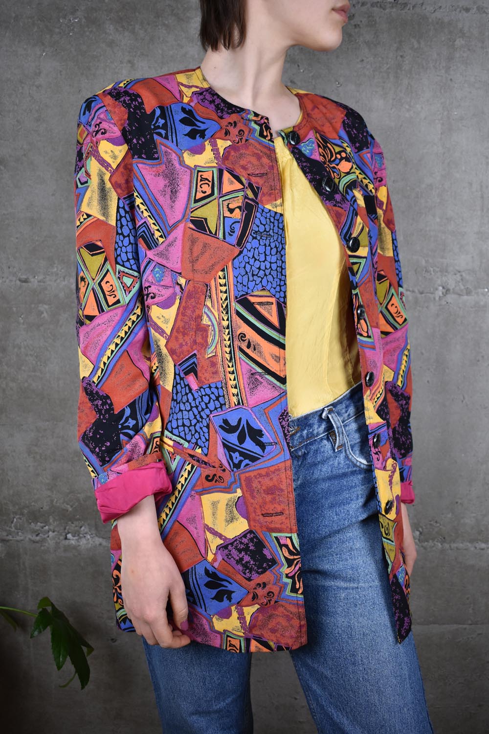 Bunter, langer Blazer von Anne Pinkerton aus den 80er Jahren in Größe 38.
