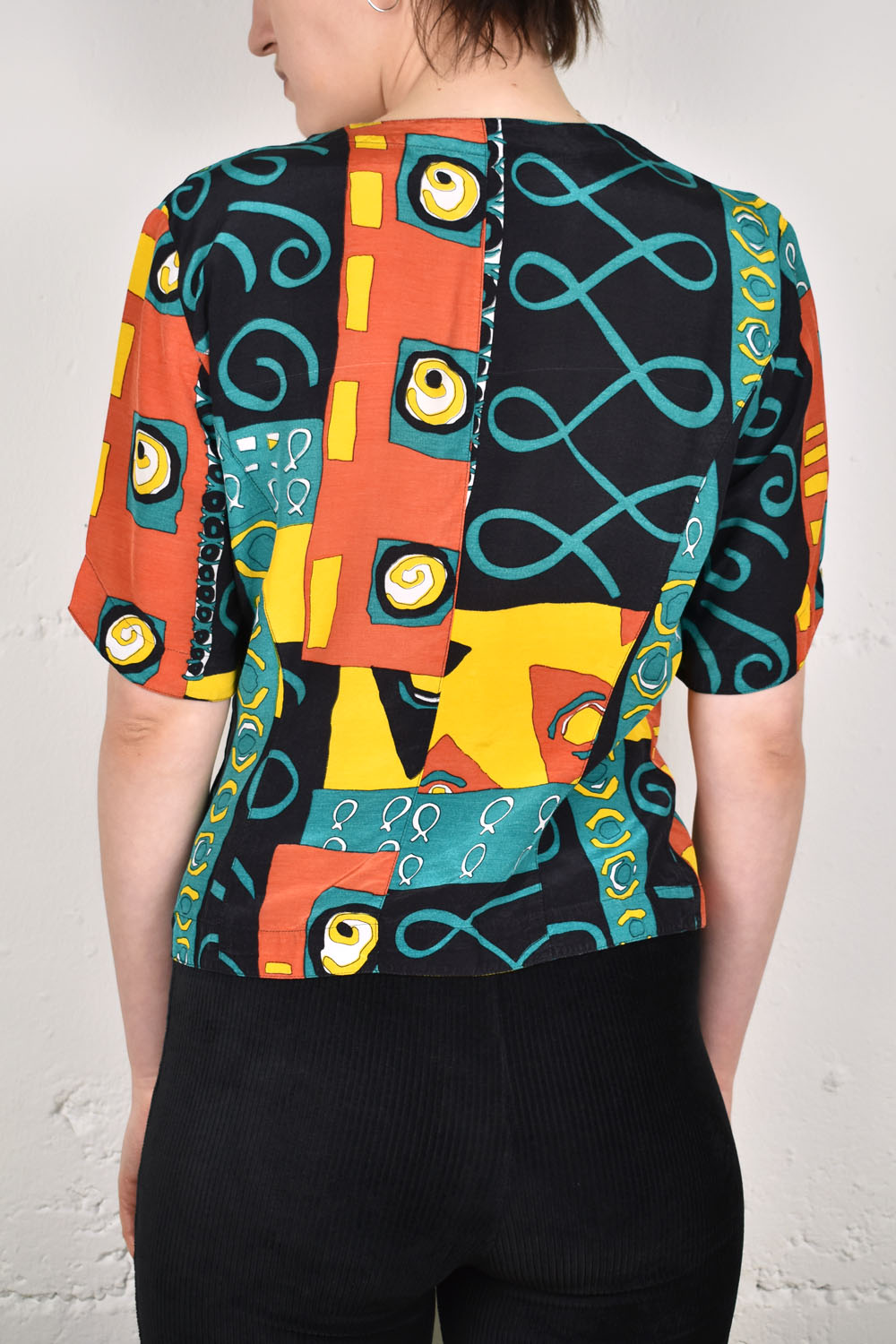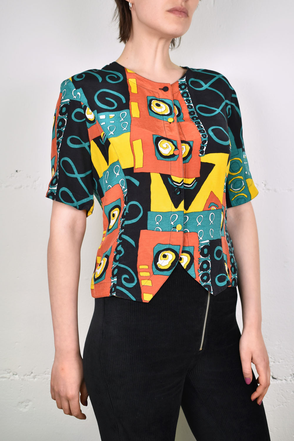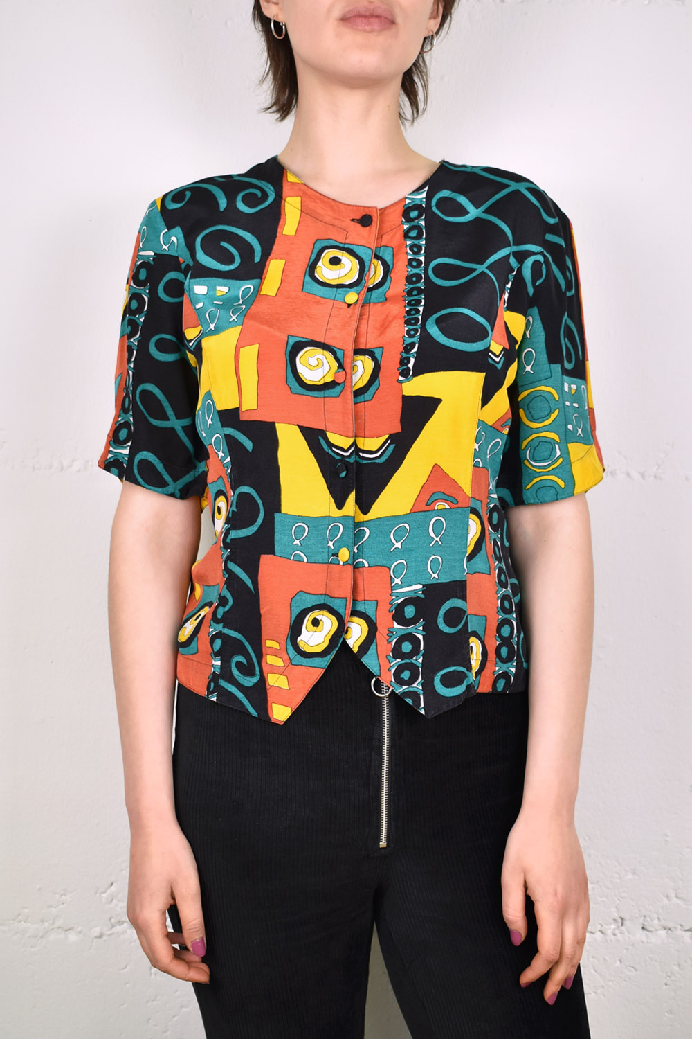 Bunte kurzärmelige Sommerbluse von Karl Lagerfeld in Größe 38 / M aus 100% Viskose. Perfekt für heiße Sommertage!